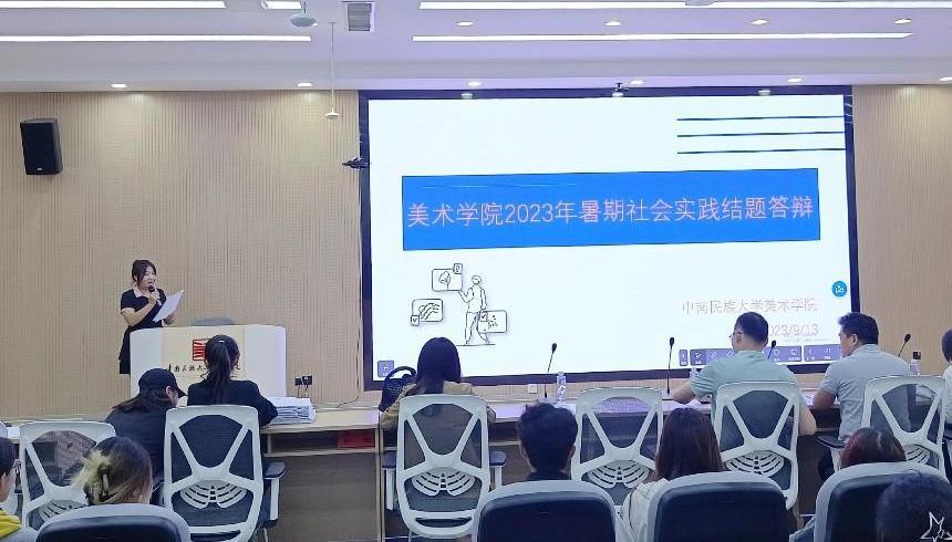9月13号中午,美术学院2023暑期社会实践结题答辩会在美术馆三楼报告厅举行。14组实践团队参加结题答辩,院党委副书记聂扬眉老师、孙云娟副教授、莫彦峰老师、学工办主任团委书记叶扶荣老师、团委副书记王海涛老师莅临现场担任答辩评审。活动由院团委创新实践部组织,李雅琪同学主持。