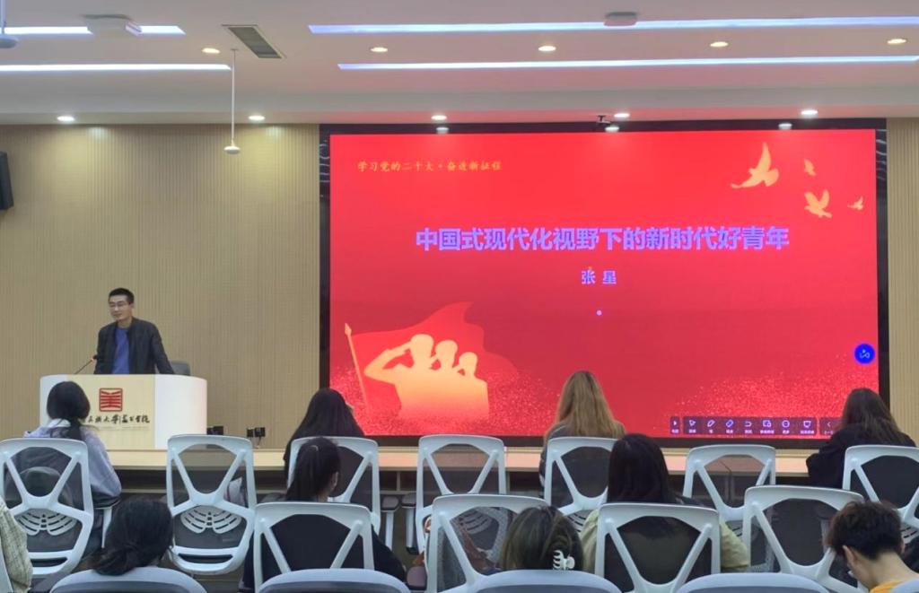 开班仪式结束后,基层团校第一讲嘉宾,法学博士、药学院办公室主任张星老师进行讲课,他以《中国式现代化视野下的新时代好青年》为主题展开课程内容。张老师分析了中国式现代化的基本内涵,并以长江十年禁渔举例,使同学们对中国式现代化有了更深刻的理解。最后,张星老师在团校课程中对中国之治的详尽讲解不仅弘扬社会主义核心价值观,还全面提高了同学们对团、对党、对国家的认识。