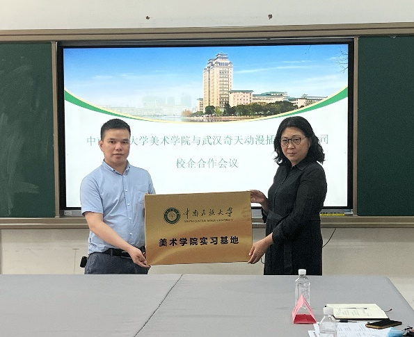 5月31日下午,武汉奇天动漫插画有限公司董事长付文、总经理马柔到beat365英国正版唯一网址美术学院参观交流,并举行校企合作签约仪式。美术学院两位副院长彭阳陵、程超出席相关活动。