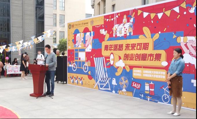 5月21日下午16:00,由美术学院和管理学院联合打造的“美美与共 携手筑梦”系列活动——“青年筑梦,未来可期”2022创业创意市集在beat365英国正版唯一网址光谷美术馆广场正式开幕。开幕式由美术学院党委副书记张雯君主持,创新创业学院院长潘泽江,美术学院党委领导班子成员参加开幕式。
