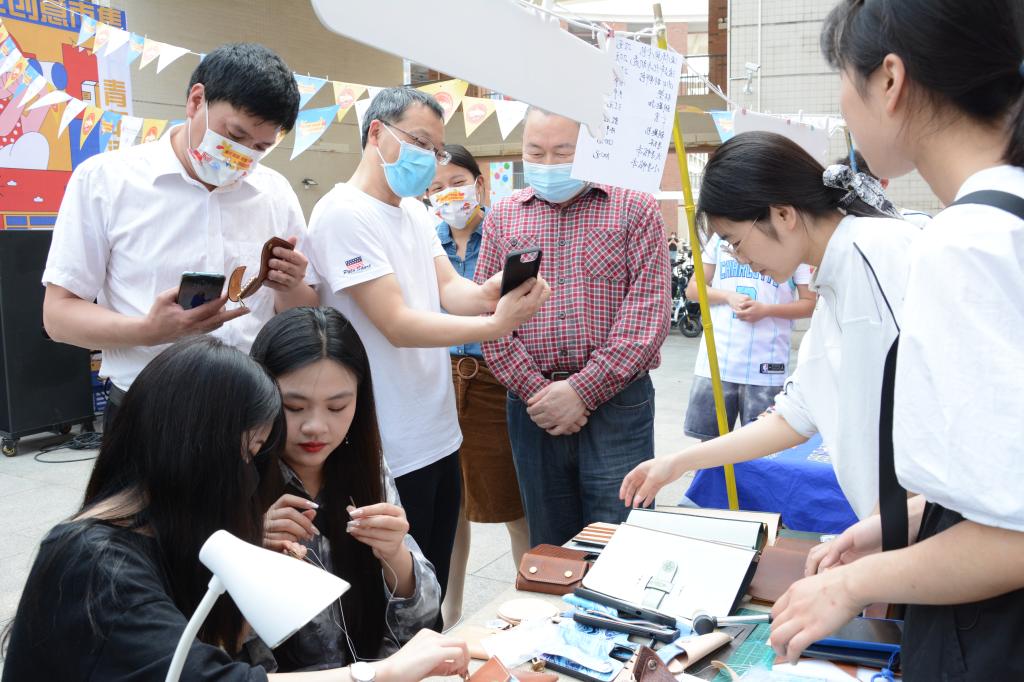 随着美术学院院长吴海广宣布创业创意市集开幕,热闹的市集正式开始。各店铺的营销团队依次上台介绍各自店铺的产品和特点,而老师同学们也在各店铺的介绍声中,走向了一个个极具特色的店铺。