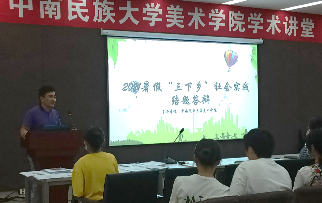 9月15号中午12:30,美术学院于美术馆三楼学术报告厅举行2021暑假“三下乡”社会实践结题答辩会。张雯君、夏晋、莫彦峰、孙菲菲、刘宁、王海涛6位老师莅临现场担任答辩评审老师。此次答辩会上共有13组团队进行结题答辩。会议由团委副书记王海涛主持。
