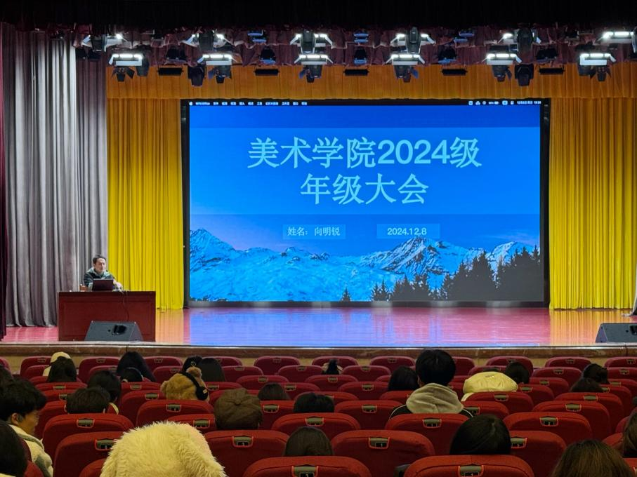 为提高同学们的校园安全意识,熟知学校各类规章制度,2024年12月8日晚上19:30,美术学院在学术会堂召开了2024级年级大会。本次会议由美术学院2024级辅导员向明锐主持,2024级全体学生参加。