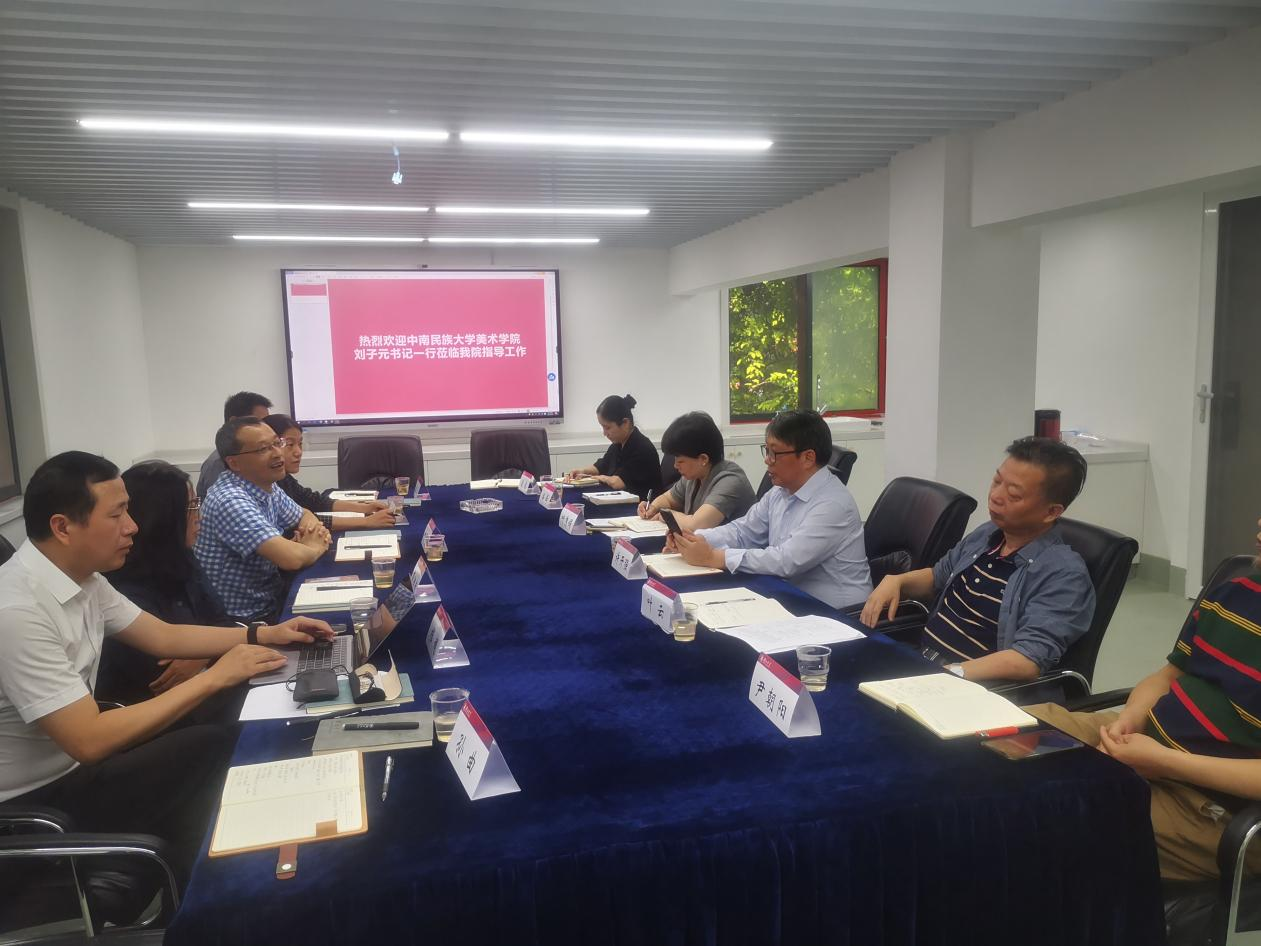 我院党委书记刘子元介绍了我院的历史发展、科学研究、人才培养、平台建设等方面情况。刘子元书记表示,本次调研学习,美术学院听取和学习了对方在平台建设、学科建设、课程建设、科研创新方面好的意见建议,获益匪浅,希望未来双方进一步拓展合作领域、优势互补,推进全方位的合作与交流。