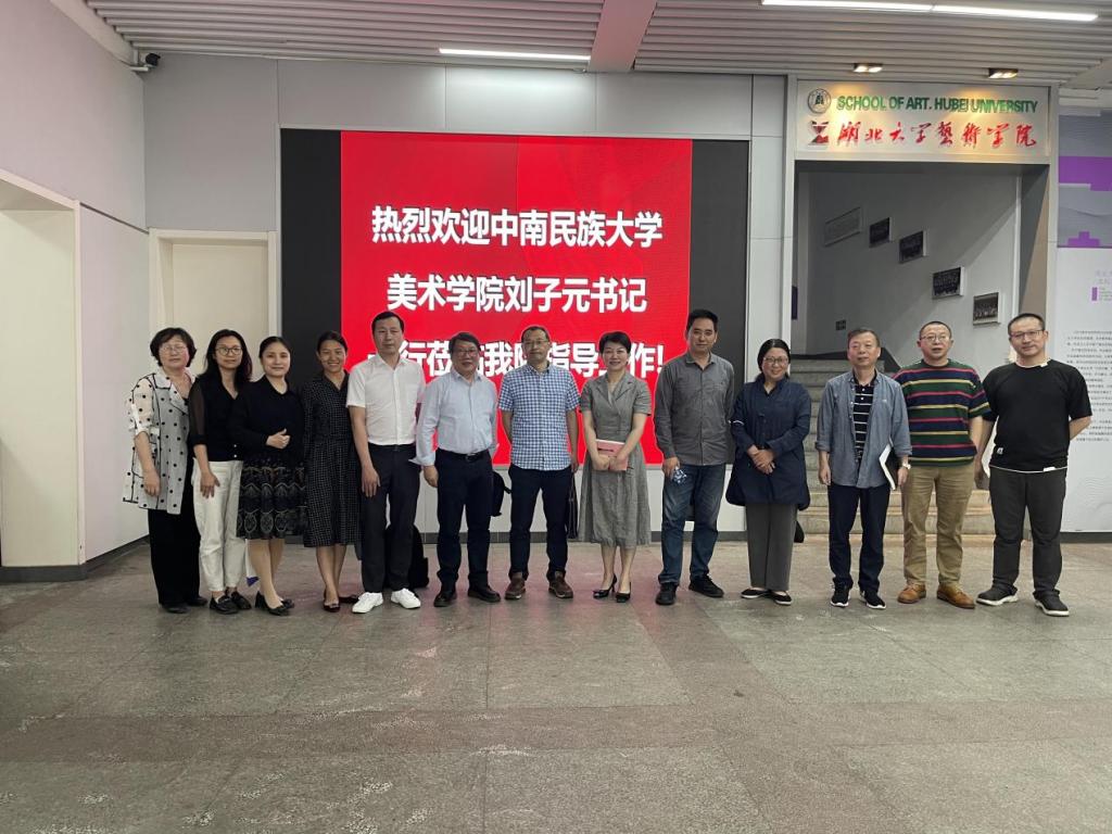 为全面贯彻落实党的二十大精神,认真开展学习贯彻习近平新时代中国特色社会主义思想主题教育,扎实推进调查研究工作走深走实,加强兄弟院校之间深度合作,助力提升我院教育教学改革水平,破解改革发展瓶颈,6月6日,学院党委书记刘子元带队赴湖北大学艺术学院调研交流,学院党委副书记张雯君、副院长彭阳陵、程超、潘俊等人随队参加调研工作。湖北大学艺术学院党委书记叶秀娟、院长许开强等领导班子成员参加了座谈会。座谈会由湖北大学艺术学院院长许开强主持。