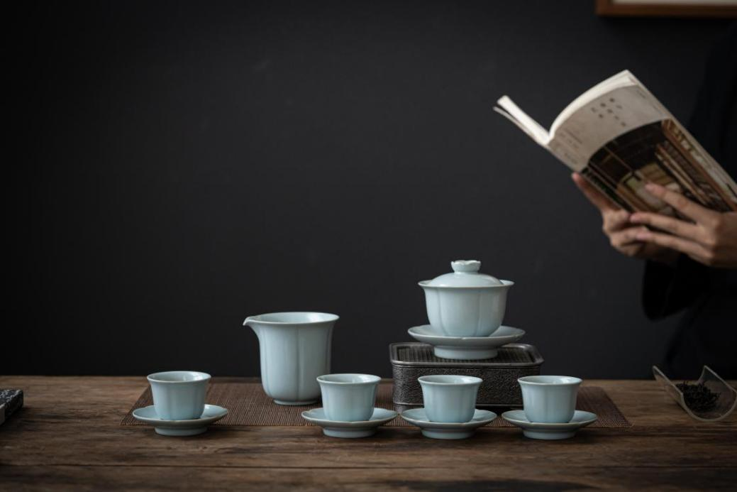 国家级非物质文化遗产汝瓷创新设计 六瓣葵口盖碗套组