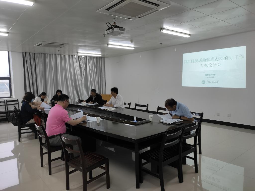 5月26日,创新创业学院在16号教学楼740室召开创新科技活动管理办法修订工作专家论证会,特邀beat365官网研究生院院长何冬兰教授、实验教学与实验室管理中心主任陈心浩教授、教务处副处长余俊等出席,创新创业学院院长潘泽江教授、副院长杨海健教授、副院长马自欣及相关工作人员参加,会议由潘泽江主持。