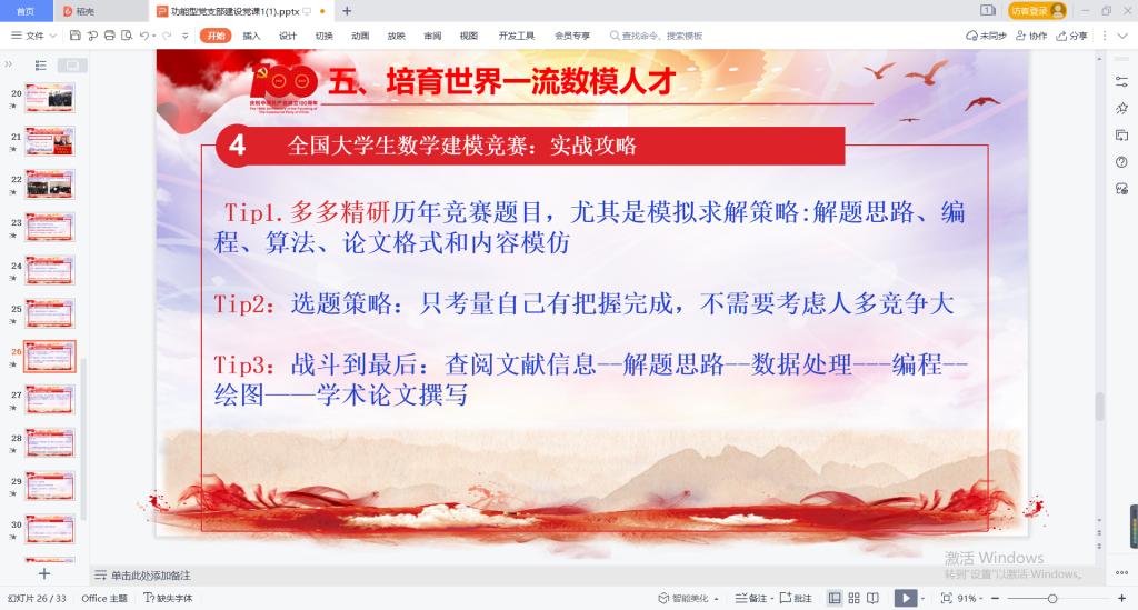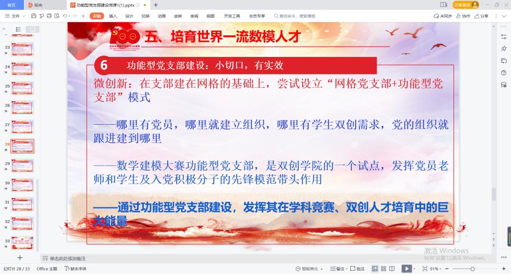 潘泽江从“弘扬伟大建党精神”“凝聚奋进新时代的强大动力”“建好学科竞赛功能型党支部”“培育世界一流数模人才”等四个方面,为数学建模竞赛功能型党支部全体师生上了一堂生动的伟大建党精神教育课。