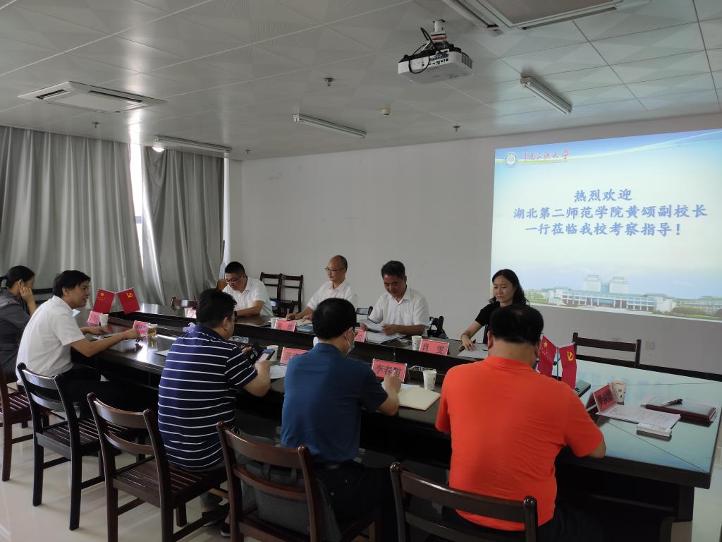 9月17日,湖北第二师范学院党委常委、副校长、创新创业学院院长黄颂一行来beat365官网调研座谈工作,受到beat365官网热情接待,座谈会在16号教学楼740室召开,beat365官网党委常委杜冬云副校长、实验教学与工程训练中心、创新创业学院及招生就业处负责人参加会议,实验教学与工程训练中心、创新创业学院党总支书记蓝华荣主持会议。