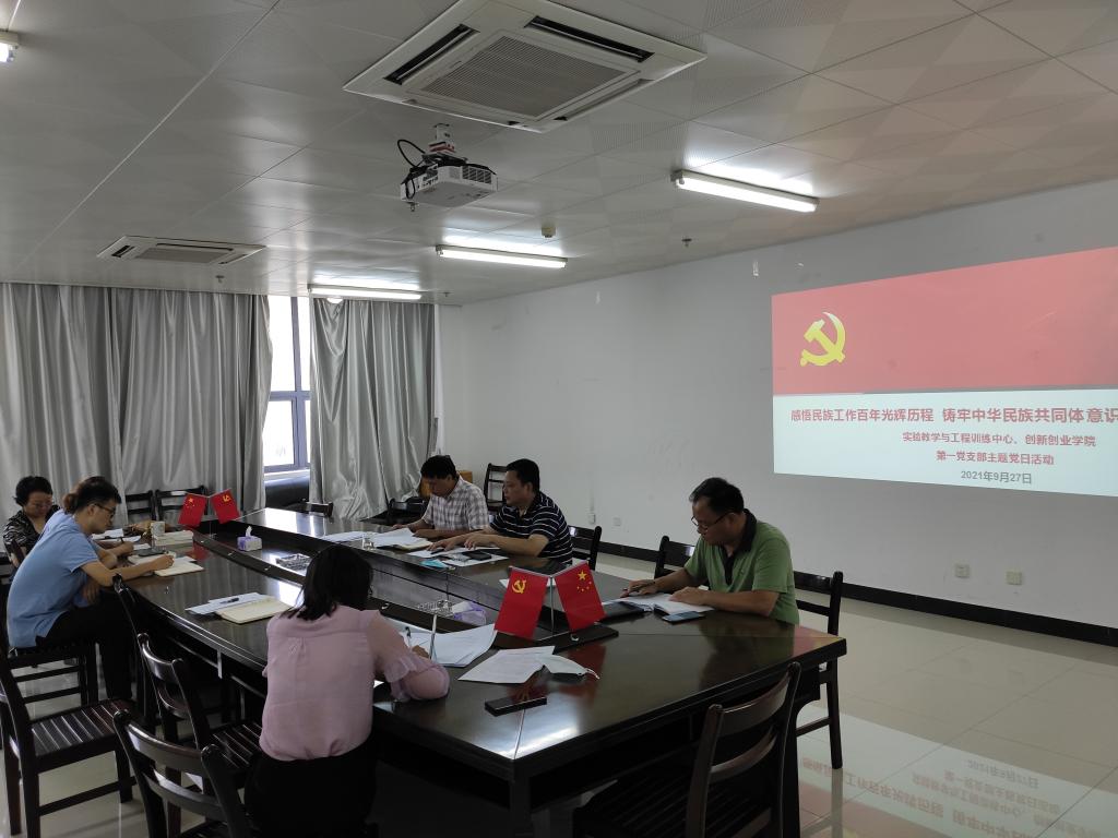 2021年9月27日下午,实验教学与工程训练中心、创新创业学院第一党支部在740会议室开展9月份支部主题党日活动,支部书记潘泽江同志主持学习活动,支部全体党员参加。