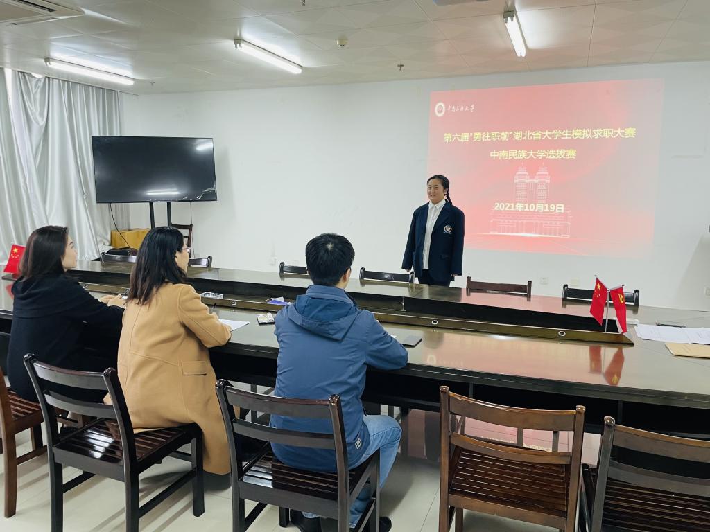 近日,第六届“勇往职前”湖北省大学生模拟求职大赛校级选拔赛落下帷幕。此次选拔赛通过简历筛选、一对一面试、个人展示、无领导小组讨论、情景模拟、压力面试、即兴演讲等多种招聘形式,考察选手的综合实力。经过激烈的角逐,6号选手刘琦同学以全场最高分获得冠军,成功取得省赛复赛资格。