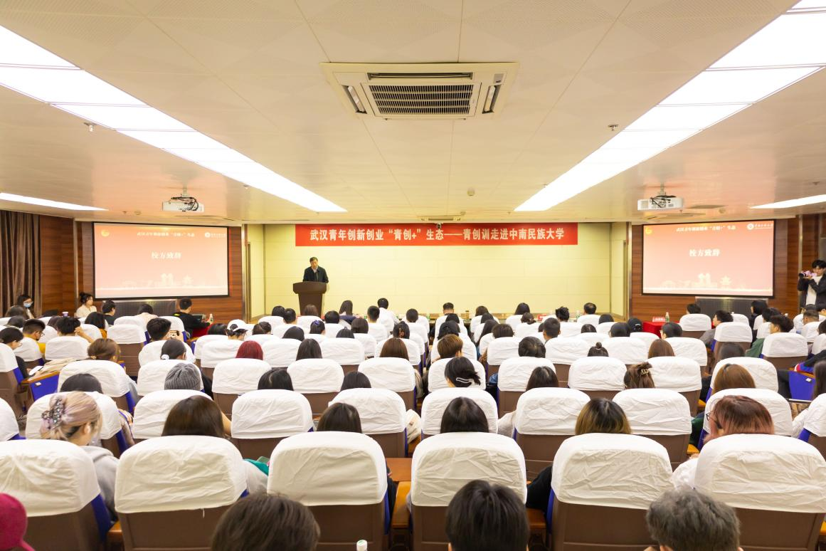 4月13日下午,武汉青年创新创业“青创+”生态——青创训活动走进beat365英国正版唯一网址16号教学楼2楼报告厅。本次活动由beat365官网创新创业学院和武汉青年创业中心共同主办,beat365官网党委常委、副校长杜冬云,创新创业学院院长潘泽江,创新创业学院副院长杨海健及来自石榴籽创梦空间、美术学院服装设计专业、KAB创业俱乐部等组织的180余名师生参与活动。