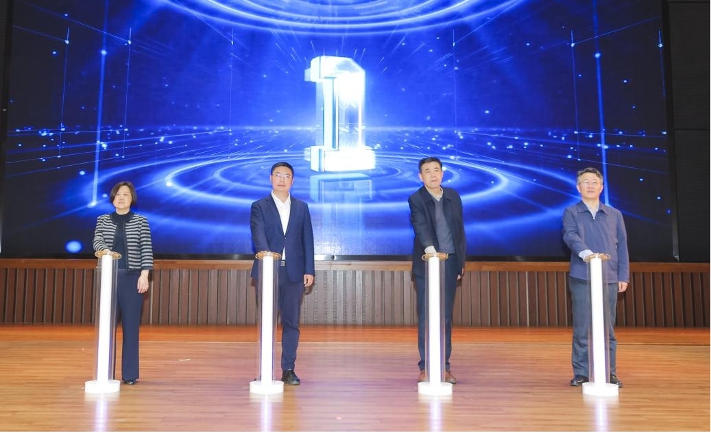 与会领导共同按亮招聘会水晶柱。 王乔峰摄