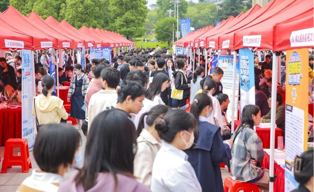 在招聘会现场,求职学生络绎不绝。 蔡兴超摄