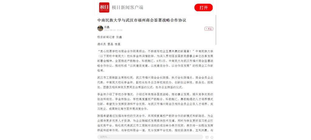 极目新闻:beat365英国正版唯一网址与武汉市福州商会签署战略合作协议