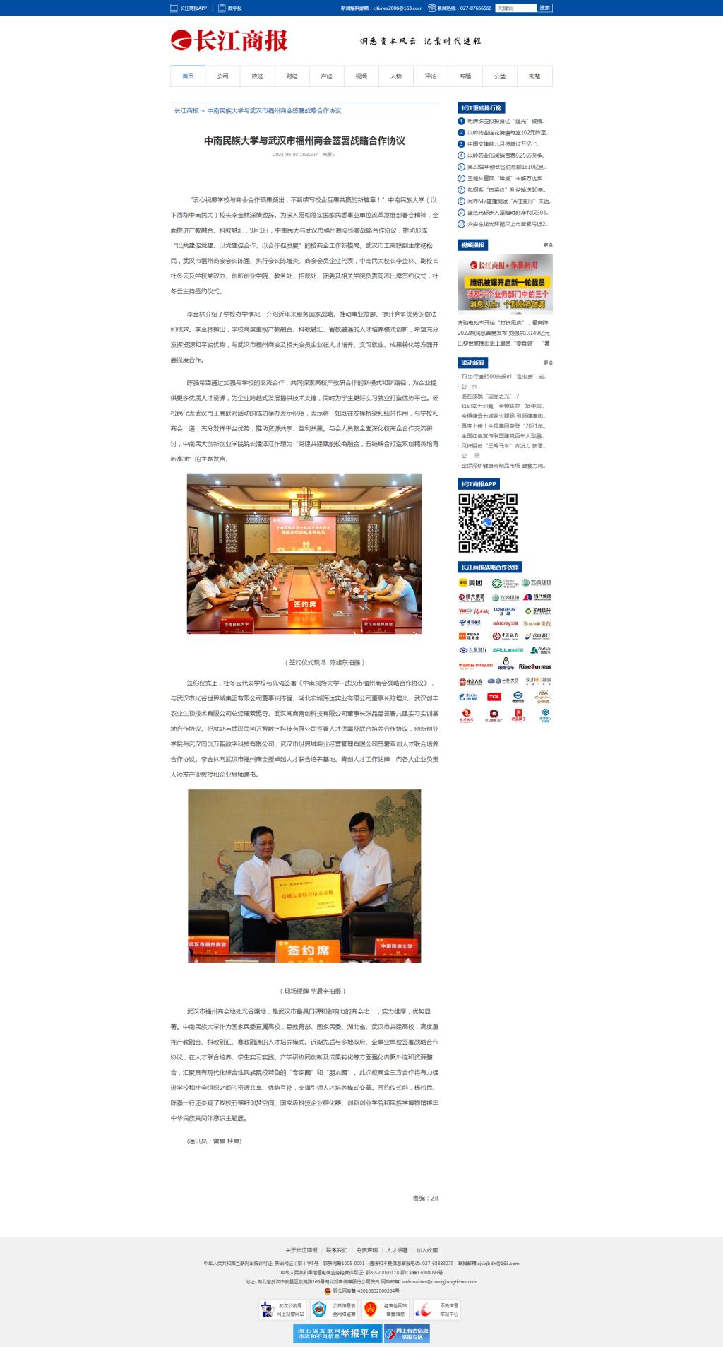 长江商报:beat365英国正版唯一网址与武汉市福州商会签署战略合作协议