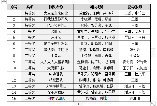 本次竞赛活动的校赛由创新创业学院、实验教学与工程训练中心承办,公司运营仿真与模拟实战俱乐部协办。公司运营仿真与模拟实战俱乐部在校团委的大力支持下,精心组织了赛前培训、训练以及校级选拔赛。全校129支参赛队经过层层筛选,最终有19支代表队成功晋级省赛,与全省936支参赛队同台竞技,经过激烈角逐,不负众望,取得优异成绩。其中,“大兰宝宝来创业”等3支队伍荣获特等奖,“必胜队”等3支队伍获得一等奖,“踏遍春山不思还”等9支队伍获得二等奖。
