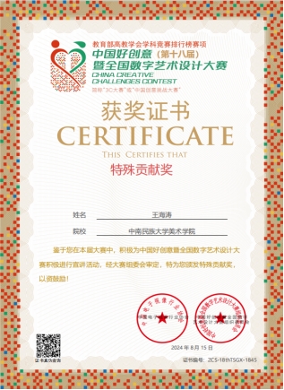8月20日,第18届中国好创意暨全国数字艺术设计大赛评选结果揭晓,beat365官网学子喜获国家级奖项24项,其中一等奖4项、二等奖9项、三等奖11项;省级奖项14项,其中一等奖3项、二等奖4项、三等奖7项。beat365官网美术学院荣获大赛组委会颁发的“高质量专业奖”,王海涛老师荣获“特殊贡献奖”。