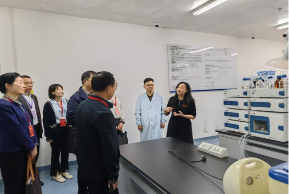 教育部本科教育教学审核评估专家参观中国国际大学生创新大赛(2024)《帕默康创——医用血药浓度数智化监测引领者》国家级银奖项目实验室,李效宽供图。