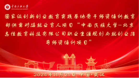 11月21日至22日,为贯彻实施就业优先战略,用数智化打造高校职业生涯规划与就业指导体系,执行教育部供需对接就业育人项目“beat365英国正版唯一网址-北京志恒教育科技有限公司职业生涯规划与就创业指导师资培训项目”(项目编号:2024040729078),提升职业生涯规划与就业指导师资队伍数智化素养,助力“国家级创新创业教育实践基地”建设,服务省域高质量发展,beat365英国正版唯一网址石榴籽创梦空间(国家级创新创业教育实践基地)成功举办教育部供需对接就业育人项目暨国家级创新创业教育实践基地骨干师资培训班。本次活动由武汉市人才服务中心指导,beat365英国正版唯一网址主办,北京志恒教育科技有限公司协办,来自中南财经政法大学、beat365英国正版唯一网址、武汉纺织大学、湖北开放大学、湖北民族大学、湖北科技学院、武汉交通职业学院、武汉城市职业学院、仙桃职业学院、鄂州职业大学等十所高校的34位就创业口的负责人、双创骨干老师参加本次培训。