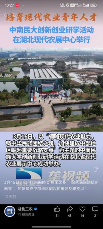 湖北三农视频号:培育现代农业青年人才——中南民大创新创业研学活动在湖北现代农展中心举行