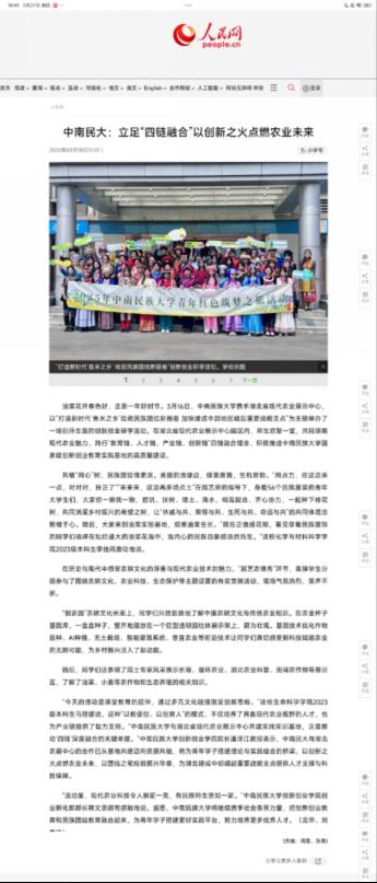 人民网:中南民大:立足“四链融合”以创新之火点燃农业未来