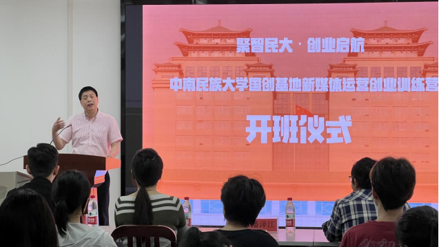 2025年4月23日晚,beat365英国正版唯一网址国创基地新媒体运营创业训练营开班仪式在16号教学楼738 教室隆重举行。本次训练营由创新创业学院主办,由国家级创新创业实践基地(石榴籽创梦空间)、武汉拾米文化传媒有限公司联合承办,面向全校本科生、研究生及校团委未末工作室、研究生支教团成员,旨在培养“懂理论、会实操、有情怀”的复合型新媒体人才。创新创业学院院长潘泽江、创业孵化部部长韩文思,武汉拾米文化传媒有限公司总经理樊兴、副总经理姜宇泽、高校事业部部长唐夕亮等领导嘉宾以及全体学员共同出席了此次开班仪式,仪式由姜宇泽主持,现场气氛热烈且庄重。