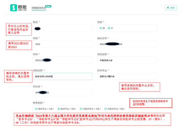 5、考生所在学院、专业、班级等信息需填写全称,勿填写简称。