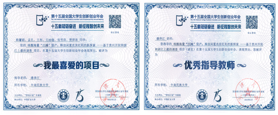 第十五届全国大学生创新创业年会获奖证书,舒翠翠供图