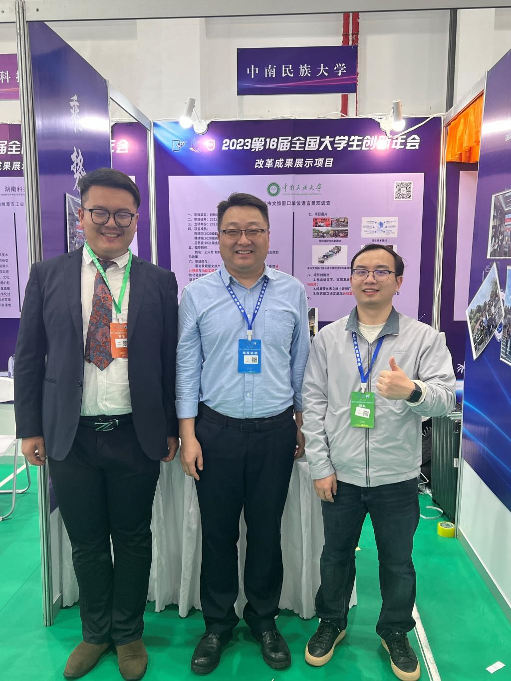 外语学院陈晓同等同学的创新训练成果《武汉市文旅窗口单位语言景观调查》(指导老师:王兴军)入选改革成果展示,该项目从旅游地语言景观的功能实现切入,构建语言学研究与文旅发展的交织型界面,从语言符号的主体互动角度为文旅主管部门的语言景观观念更新、创设者科学设计提供学理支持和实践参考。项目已形成论文5篇,建成语言景观数据库2套、语言景观优化方案5套、咨询报告2篇被湖北省文旅厅、武汉市文旅局、武汉市园林与林业局等部门采纳;与黄鹤楼公园管理处等窗口单位共建语言景观长效监督机制,完成语言景观优化210余处。