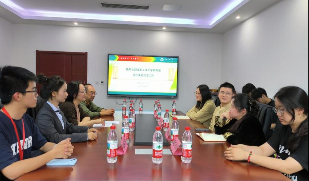 参观结束后,双方齐聚会议室,围绕校史馆相关工作展开了深入的交流。我馆讲解队指导老师田银娟详细介绍了beat365官网校史馆讲解志愿服务队的基本情况,涵盖主要工作内容、队伍构成以及队伍管理等方面。随后,湖北工业大学校史宣讲协会指导老师黄瑶、肖媛媛、娄璇对湖北工业大学校史馆的基本情况和讲解队建设情况进行了简要介绍。双方师生积极互动,就讲解队(协会)的运营机制、展馆管理经验、讲解人员的招募与培训方法,以及校史研究的技巧与心得等多方面进行经验分享,思路探讨,互鉴共进。