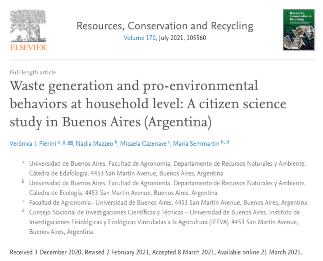 文章的研究的目标包括:(1)量化阿根廷布宜诺斯艾利斯市的生活废弃物产生量以及构成;(2)首次使用公众科学方法来评估生活废弃物管理行为。本研究对525个家庭在一周内产生的废弃物进行了分类和称重,并完成了有关当前和潜在的环保行为的问卷调查。结果显示,每人每天产生的废弃物为430克,其中50%是有机的,29%是可回收的,剩下21%是不可回收的。分类行为并不会影响废弃物的产生。宠物,婴儿和家庭烹饪会增加废弃物的产生。大多数参与者(81%)将他们的废弃物进行分类,24%的参与者进行有机堆肥。研究进一步发现,目前尚未具有分类和堆肥习惯的人非常愿意培养这些习惯。在发展中国家的背景下,公众科学是废弃物研究的一种可靠、低成本和可扩展的方法。