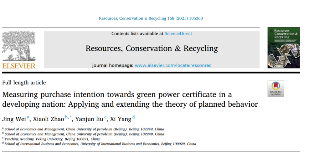 低碳能源与企业清洁生产软科学基地学习小组集体学习了RCR新文:发展中国家绿色电力证书购买意愿的研究。该文章通过建立基于计划行为理论(Theory of Planned Behavior, TPB)的框架,填补了绿色电力证书购买意愿研究的空白。