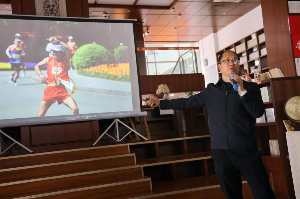 此外,潘元金老师还介绍了如何根据不同的拍摄对象和环境选择合适的拍摄手法,重点讲解了长焦镜头捕捉表情和追随拍摄手法,如慢门、旋转拍摄和高速频闪等方法在拍摄动感照片时的重要性。潘元金老师展示了原创作品《武汉马拉松中的“好汉归来”》,该作品选择了具有代表性的参赛者为主体,运用追随拍摄手法,展现运动员独特的拼搏精神。