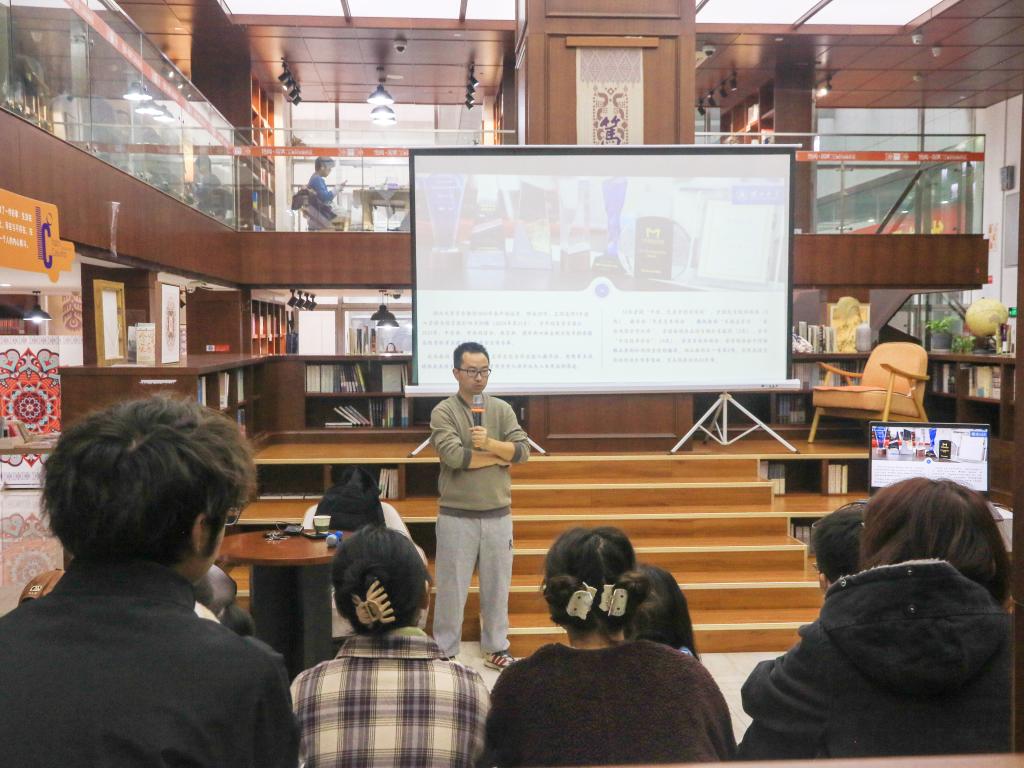 11月24日下午,由党委宣传部主办、大学生记者团承办的“柳岸心音”线下沙龙系列讲座第七讲在图书馆倍阅书店举行。湖北大学校报编辑、媒介研究中心研究员,湖北新闻摄影学会常务理事向正鹏应邀来校,作题为《高校官微受众需求与选题策划》的讲座。大学生记者团新媒体中心全体成员参加,新媒体中心编辑赵浡涵主持讲座。