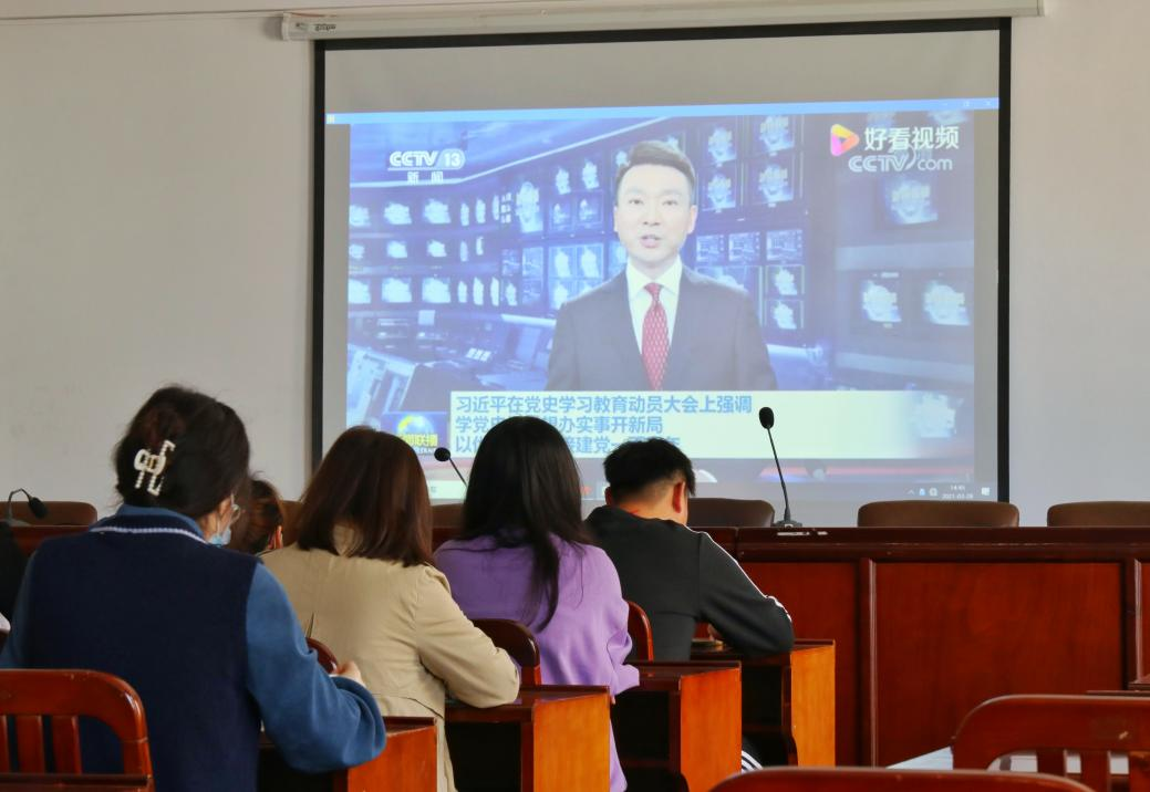 学生党员带领全体成员宣读入党誓词以及《中国共产党章程》总纲,通过观看视频集体学习了习近平总书记在党史学习教育动员大会上的讲话。总书记在讲话中关于党史学习中提出要做到学史明理、学史增信、学史崇德、学史力行,教育引导全党同志学党史、悟思想、办实事、开新局。全体党员根据学习要求认真学习原文,做好笔记,深入思考。