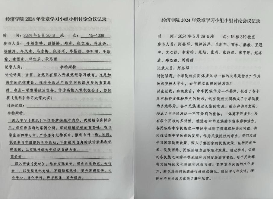 5月29日,结合学院近期“党纪学习”专题,党章学习小组组织开展“党章、党纪、正确民族观、中华民族发展史”知识竞赛及小组研讨活动。在小组研讨中,各分小组积极召集成员围绕“如何将党纪学习走深走实?”“中华民族多元一体的关系是什么?作为民族院校大学生,如何树立正确的民族观?”等主题开展研讨。在知识竞赛现场,各党章学习小组在结合前期自学、研学的基础上踊跃报名参与,积极抢答,现场气氛不断升温。本次知识竞赛题库不仅包含了党章党史相关知识,也将党纪专题学习相关知识及正确民族观教育知识融入其中,通过此次活动,调动了各位同学理论学习的积极性,丰富了理论学习方式,形成了以赛促学的良好氛围。