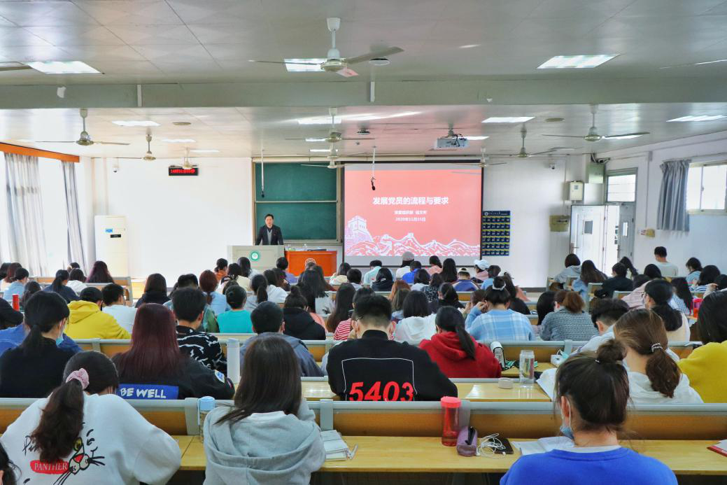 校党委组织部副部长钱文彬在《发展党员的流程与要求》主题讲解中谈到,在全面加强党的建设,全面从严治党的大背景下,发展党员要深入贯彻党的“五个基本”原则,遵循十六字总要求,始终把政治标准放在首位,坚持入党自愿原则和个别吸收原则,学会慎重发展、均衡发展,禁止突击发展,反对关门主义,积极主动配合党支部开展发展党员工作,对自己和党支部负责。