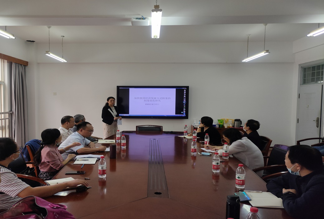 本站讯(记者:张瀛一)为科学引导结题,提升成果质量,确保重要人文社科项目顺利结题,9月17日下午,经济学院于15号教学楼1023会议室召开重要人文社科项目结题促进会。经济学院院长李波、副院长熊芳、专家刘占勇、陈祖海、沈道权、张娟参加,学院部分老师到场聆听,会议由熊芳主持。