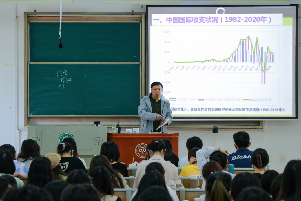 陈全功教授从知识点回顾、中国及主要发达国家国际收支状况、中美双边贸易差额、美国对华货物贸易逆差的形成原因等方面对《国际金融》课程第一章的“国际收支平衡表差额分析”专题进行讲解。通过数据分析和问题引导等方式,将基础理论与现实热点紧密结合,详细讲述了中国改革开放进程中的巨大成就和发展经验,引导同学们深入了解中美贸易关系和美国对华货物贸易逆差问题,正确认识和把握当前的国际经济格局。课后,同学们纷纷表示受益匪浅,不仅拓宽了专业知识,还坚定了理想信念,明确了政治方向。