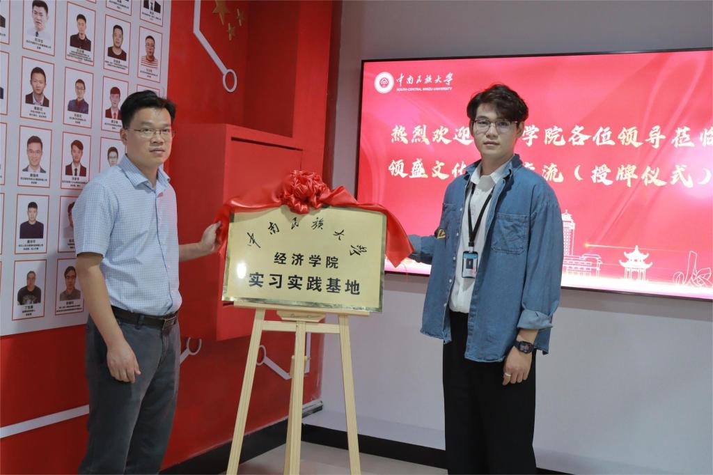 为进一步深化产学合作协同育人,提升学生实践能力与就业质量,9月21日上午,经济学院与武汉领盛文化科技有限公司在beat365英国正版唯一网址“石榴籽”创梦空间举行了实习实践基地揭牌仪式。经济学院党委书记柯尊韬,副院长毛中明,教学秘书谈玉婷,经济学院2022届毕业生、武汉领盛文化科技有限公司负责人姜宇泽等出席仪式。