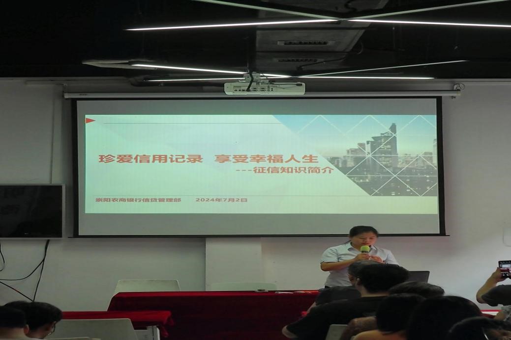 本次暑期实习,经济学院2021级127名金融学大类专业学生前往湖北省咸宁市崇阳县农村商业银行。上午十时,全体师生抵达崇阳研学基地,参与了一系列高水平的乡村金融讲座。首场讲座由湖北崇阳农商行信贷部的胡经理主持,他针对个人征信知识进行了精炼的介绍,旨在促进学生将课堂学习与实际工作有效对接,实现理论知识与实践操作的有机融合,从而拓宽学生的知识视野,汲取更多书本以外的实用知识。