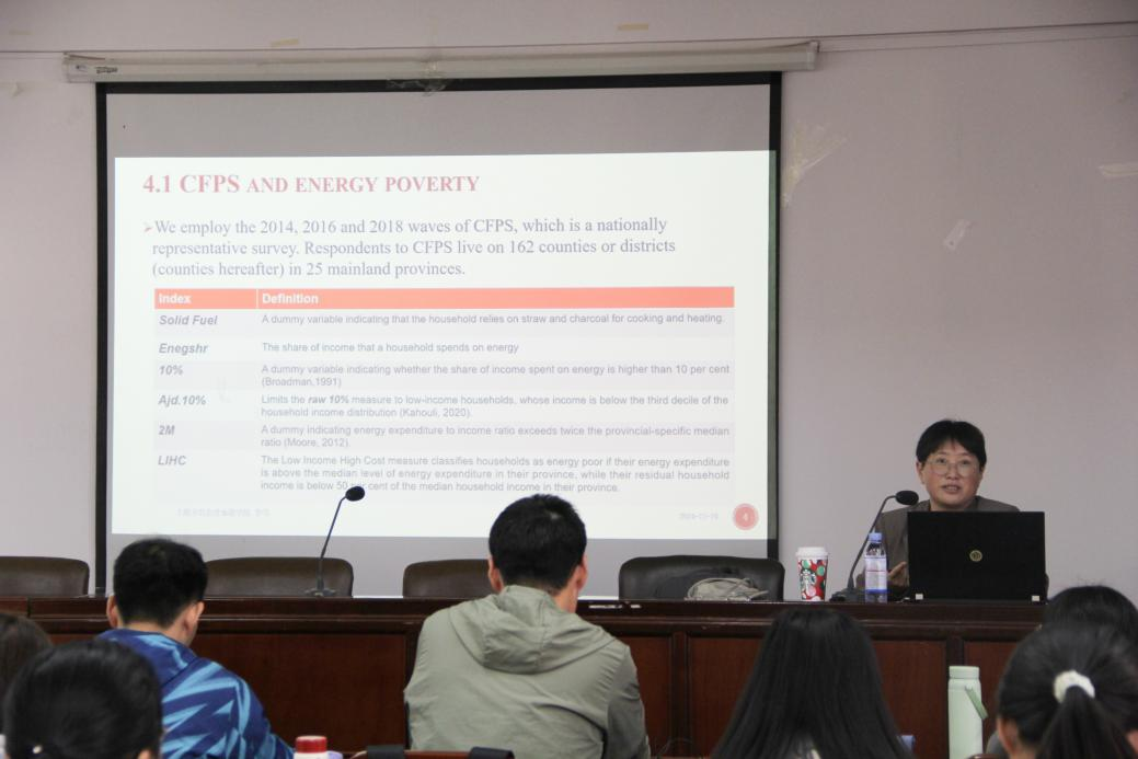 李雪教授以空气污染对家庭能源支出的影响及机制研究》为题,围绕数据、选题、文献综述、研究意义、实证设计等关键方面分享了独到见解和宝贵经验。在数据方面,她提出三项重要建议:一是确定样本时应对样本数据进行回归以确保一致性;二是鼓励同学们在做上市公司数据研究时打通企业上下游的链条,展示对企业产业链的影响;三是建议同学们尽量避免使用省级数据,更多地采用地市级或县级数据,以获得更细致准确的研究结果。
