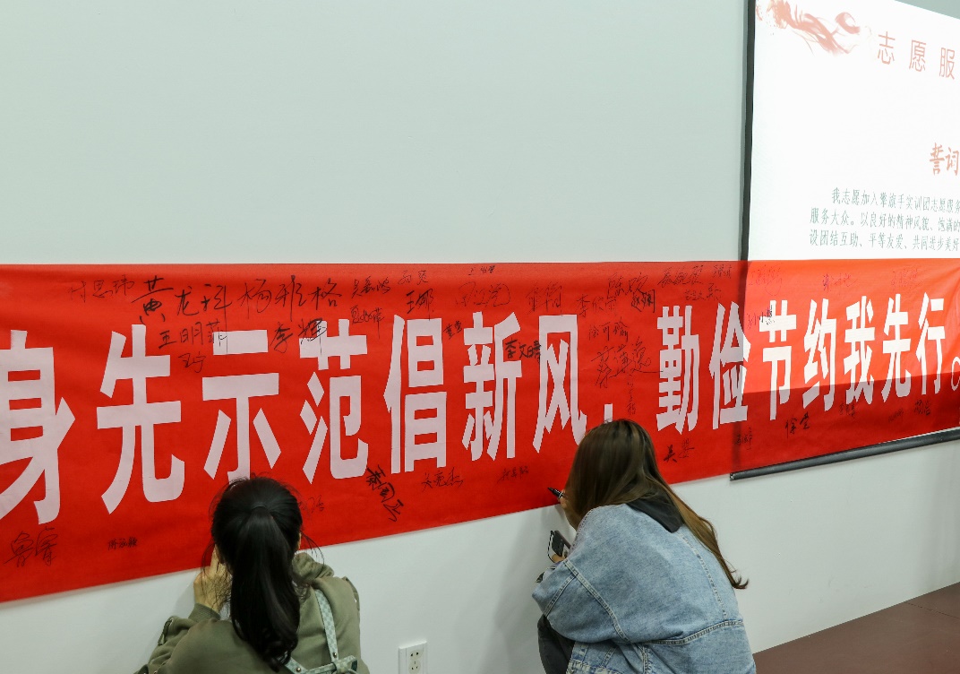 会后,在负责人的组织下,擎旗手实训团成员依次在“拒绝浪费,厉行节俭”横幅上签字,以实际行动积极响应党中央号召,坚决做到“拒绝浪费,厉行节俭”。
