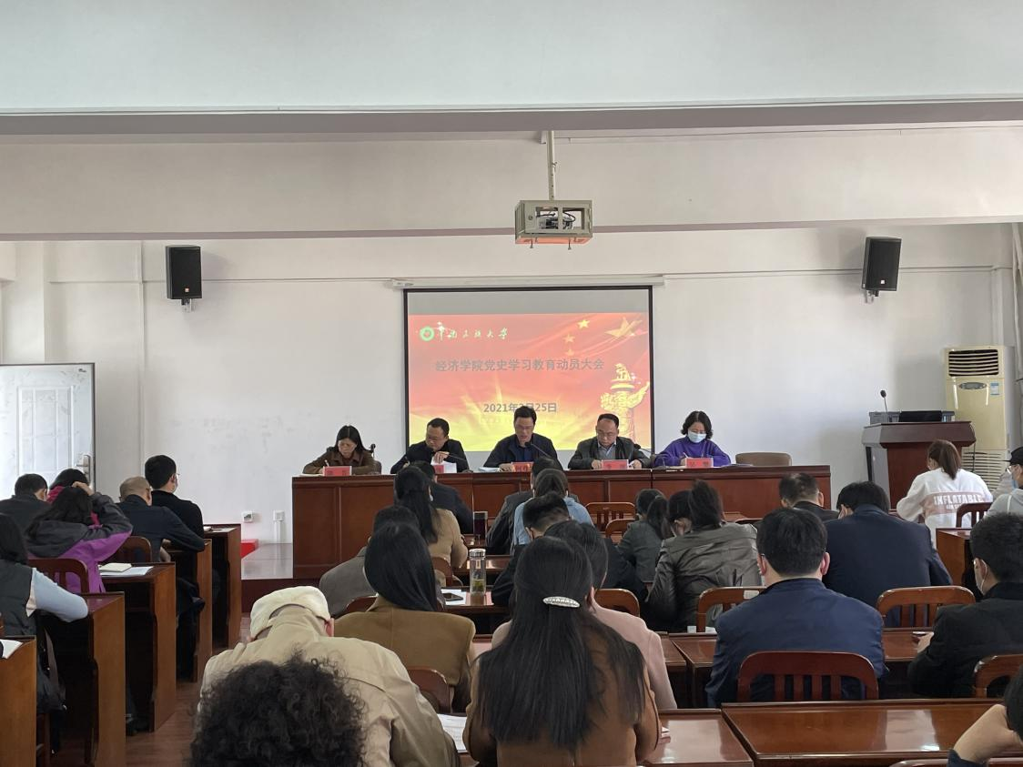 为加强党史学习教育,持续深入学习贯彻习近平新时代中国特色社会主义思想,巩固深化“不忘初心、牢记使命”主题教育成果,3月25日,经济学院召开党史学习教育动员大会,对开展党史学习教育进行全面动员和部署安排,学院全体教工和学生党员参加动员会。会议由学院党委副书记、院长李波主持。