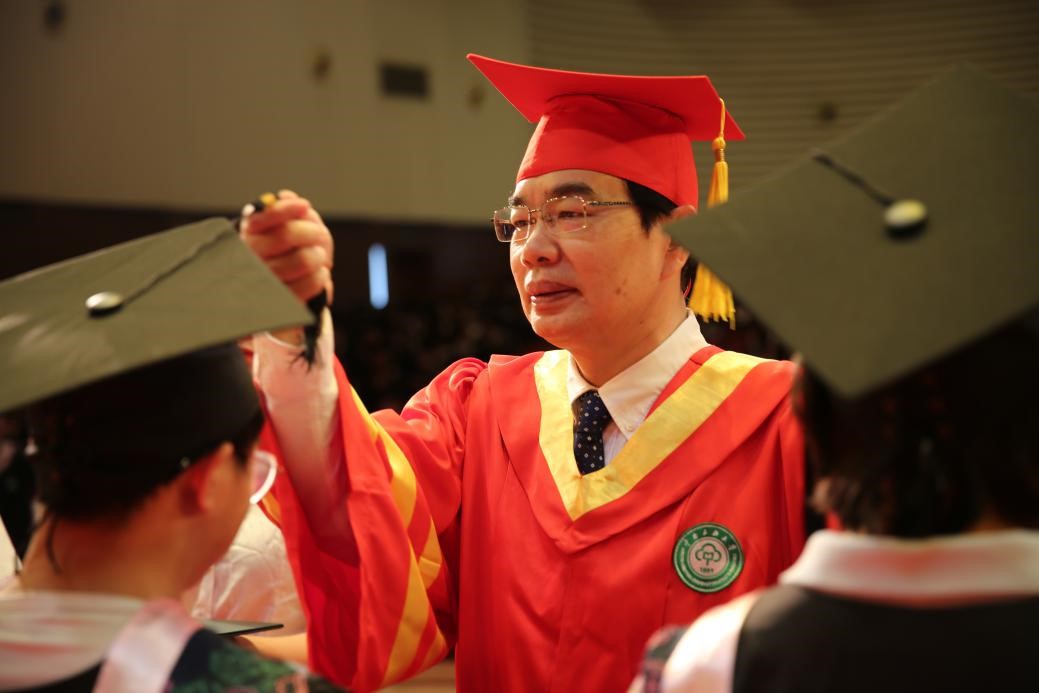经济学院副院长毛中明宣读了学士学位授予决定。校长李金林教授为毕业生们颁发学位证书,并一一正冠拨穗,合影留念。