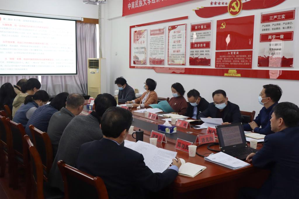2021年10月13日,经济学院举行党委理论中心组(扩大)第八次专题学习,集中学习《中国共产党统一战线工作条例》,围绕统战工作开展交流研讨。校党委统战部常务副部长唐光海应邀作专题辅导报告,经济学院领导和民主党派、无党派人士、其他党外知识分子参加会议。会议由院党委书记柯尊韬主持。