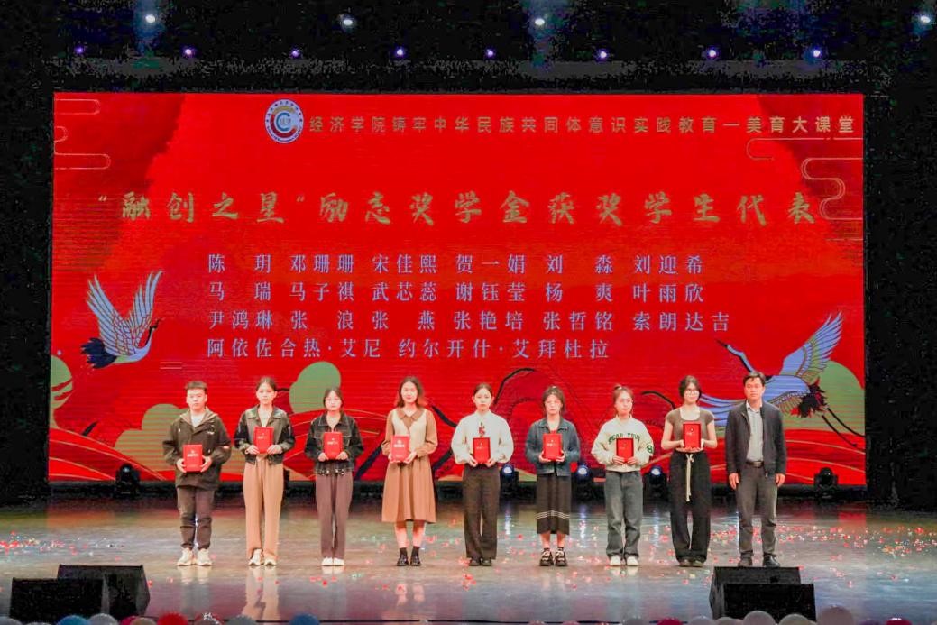 聚散有时,全体师生凝心聚力书写抗疫大爱无疆;奋进致远,经济学院为莘莘学子寄予美好祝愿。美育大课堂在青春洋溢、活力四射的开场舞中拉开帷幕,歌曲《我的名字》《记念》《克卜勒》《玫瑰少年》《不为谁而作的歌》唱出青年朝气,展现青春活力;街舞《青春飞扬》、齐舞《HELLO》、器乐《乐队表演》以自信昂扬、朝气蓬勃的青春风貌,赢得了在场观众的阵阵欢呼;民乐演奏《生生世世爱+寻一个你》中乐声清扬悠远、动人心弦,演绎出民族乐器的独特风情,凸显民族地区深厚的历史文化底蕴;朗诵《永不消逝的声音》深情歌颂了中国共产党栉风沐雨、砥砺前行的奋斗精神;民舞《阿杰鲁》《盛开》中,舞者将柔美的身姿化作纸笔,书写青年们不畏艰难、顽强生长的盛世芳华;由全体表演者合唱的《星辰大海》蕴含对时代与未来的无限憧憬,表达对祖国与人民的真切祝福。