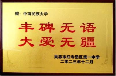 2024年1月2日,经济学院收到吴忠市红寺堡区第一中学寄来的感谢牌匾,上面书写着“丰碑无语、大爱无疆”八个大字,感谢并表扬了经济学院2020级国际经济与贸易专业的兰元元同学为该校学生购买学习文具的事迹。