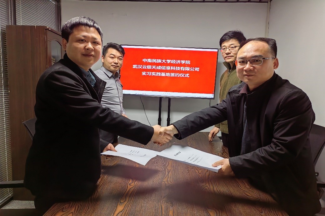 2月1日上午,经济学院院长李波和副院长马楠共赴武汉云极天成信息科技有限公司,签订实习实践基地合同并举行挂牌仪式。
